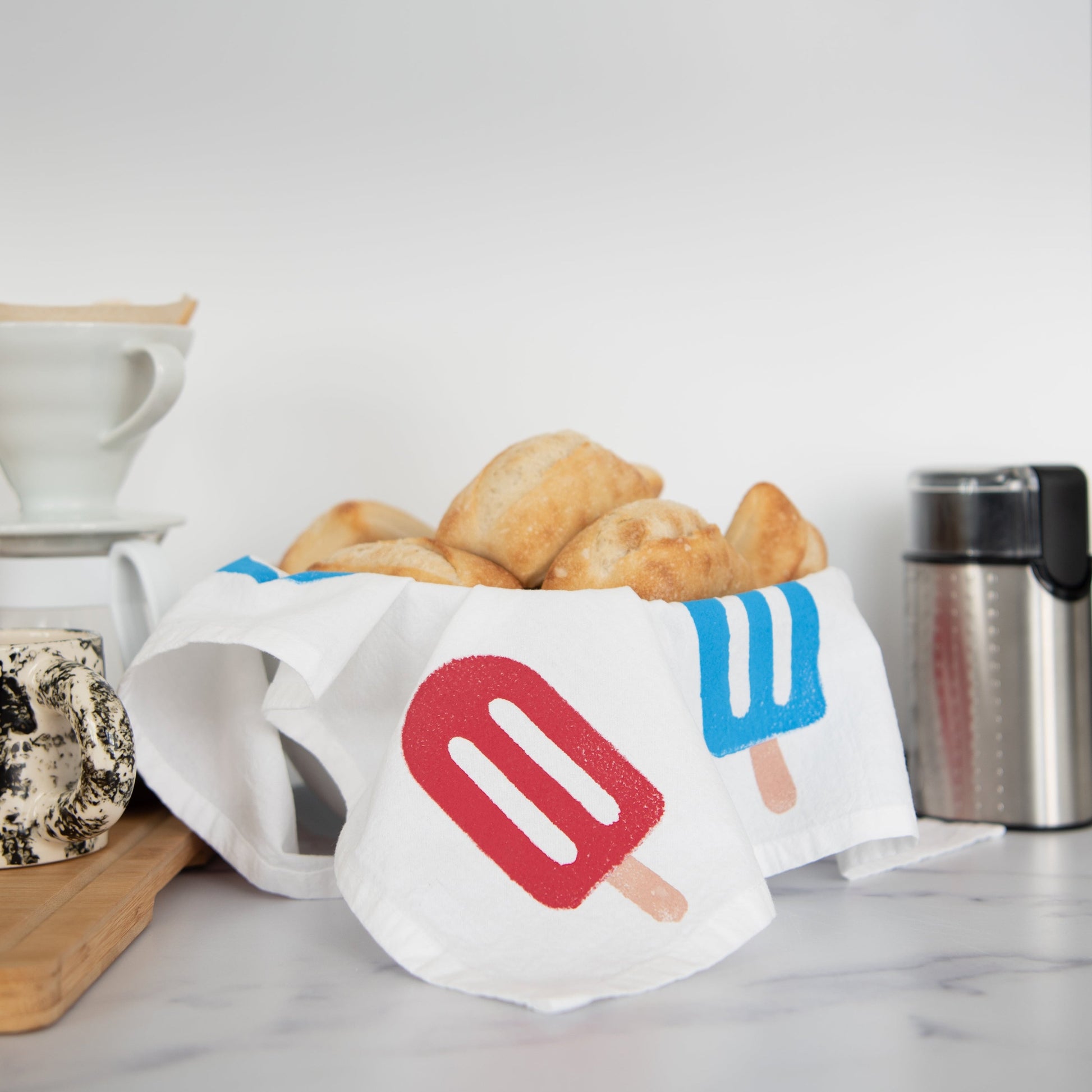 Block-Printed Popsicles Flour Sack Kitchen Towel